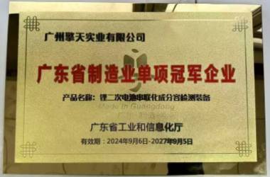 获得“广东省制造业单项冠军企业”