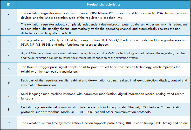 EXC9200 여자 시스템은 10-1000MW 수력발전기, 양수발전기, 화력발전기, 가스 터빈 발전기, 원자력발전기 등의 다양한 발전기 세트에 적용됩니다.